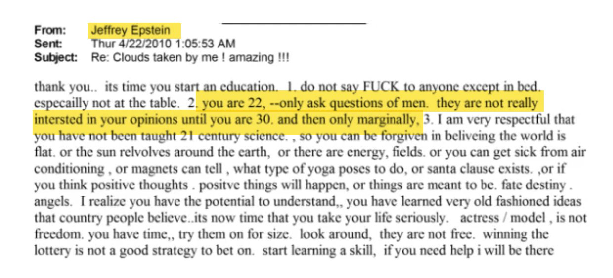 Epsteinโs words of wisdom to a 22 year old model. Honestly such good advice lmao